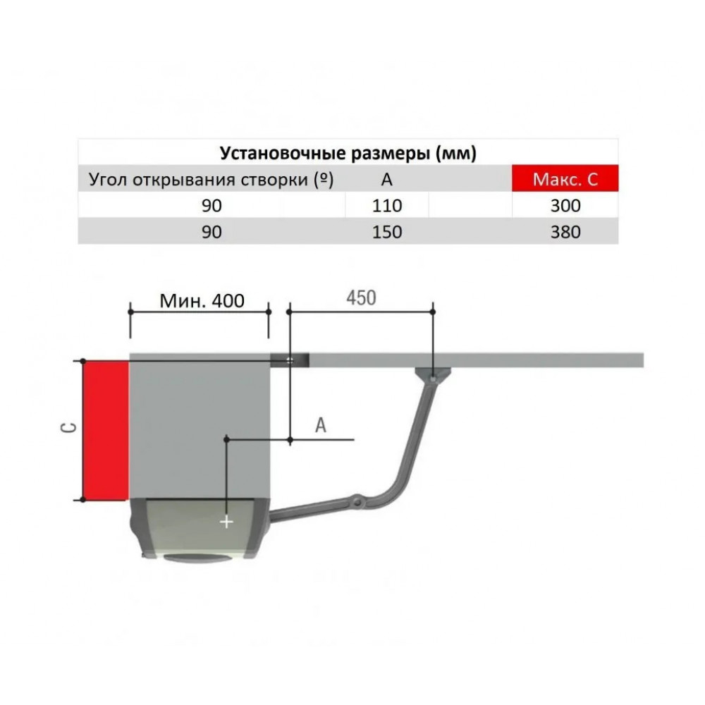 - Макс. значение "С" (мм)