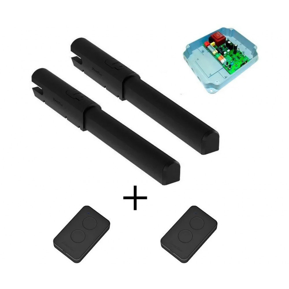DoorHan SW-5000PRO-BASE+ комплект линейных приводов для распашных ворот. Максимальная длина створки, 5 м; Напряжение питания, 220 В; Максимальный вес створки, 500 кг.; Мощность 150 Вт; Диапазон рабочих температур -40...+55 °С; Скорость открывания 0,9 м/мин; Класс защиты: IP54; Интенсивность использования 50 %; тип редуктора электромеханический. В составе: привода Swing-5000PRO -2 шт, блок управления для распашных приводов SW-min, пульт Transmitter 2-PRO - 2 шт.