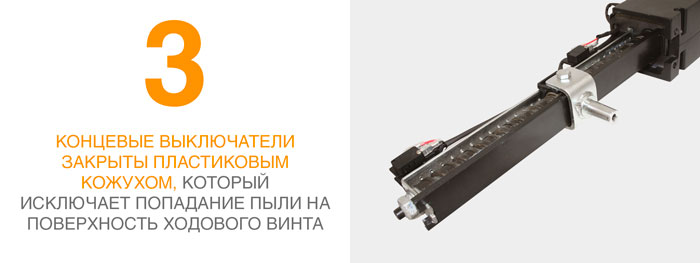 Привод оборудован встроенными электрическими концевыми выключателями на открытие и на закрытие.